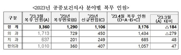 º¸°Çº¹ÁöºÎ´Â 2023³â ½Å±Ô ÆíÀԵǴ °øÁߺ¸°ÇÀÇ»ç 1,106¸íÀÌ 4¿ù 10ÀÏ(¿ù) Áß¾ÓÁ÷¹«±³À°À» ½ÃÀÛÀ¸·Î 36°³¿ù°£ÀÇ º¹¹«¸¦ ½ÃÀÛÇÑ´Ù°í ¹àÇû´Ù.